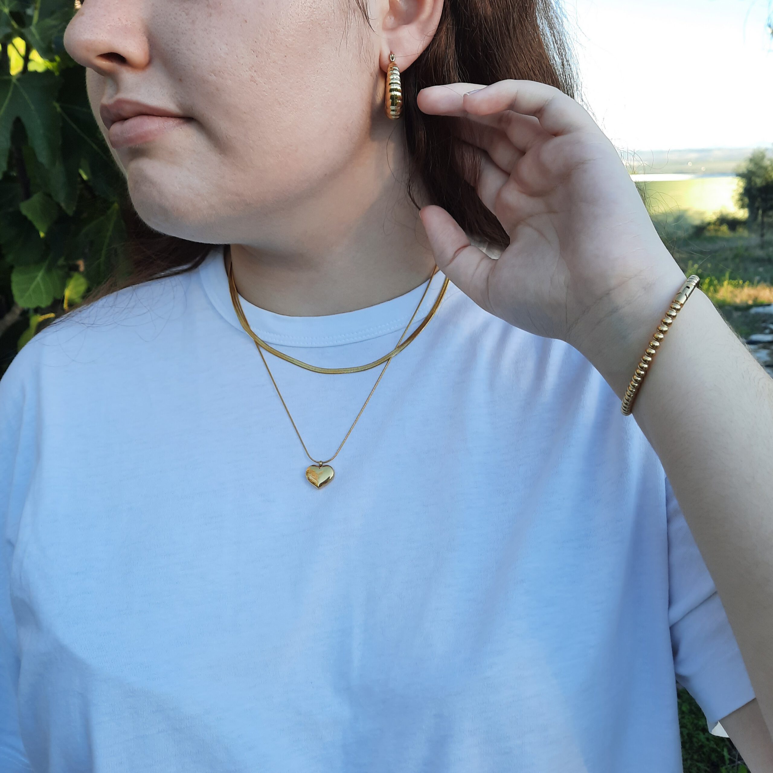 Este hermoso collar dorado combina elegancia y ternura en una sola pieza. En el centro, el collar cuenta con un colgante en forma de corazón, liso y brillante, que añade un toque romántico y sofisticado al diseño. El acabado pulido del corazón realza su brillo, haciéndolo destacar como el punto focal del accesorio. Este collar es ideal para ocasiones especiales o para darle un toque de dulzura a tu look diario, convirtiéndose en una pieza imprescindible en tu colección de joyería.
